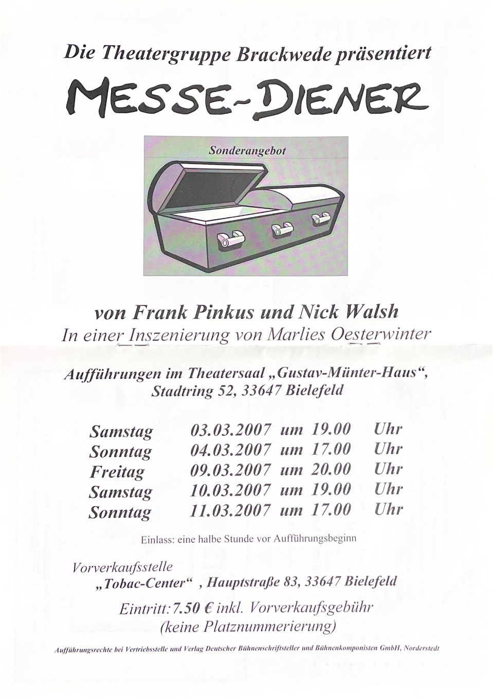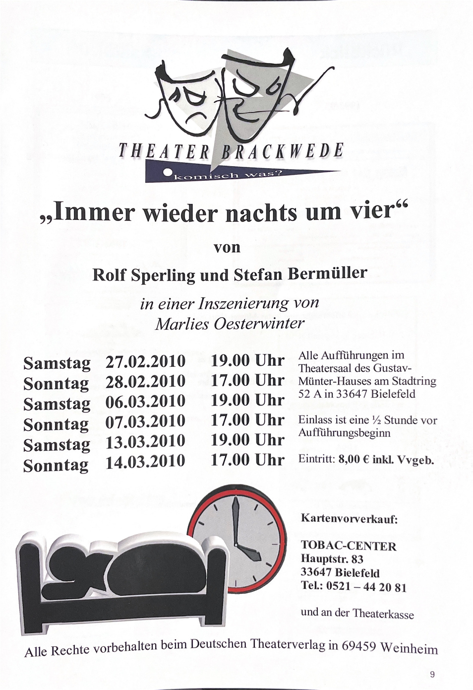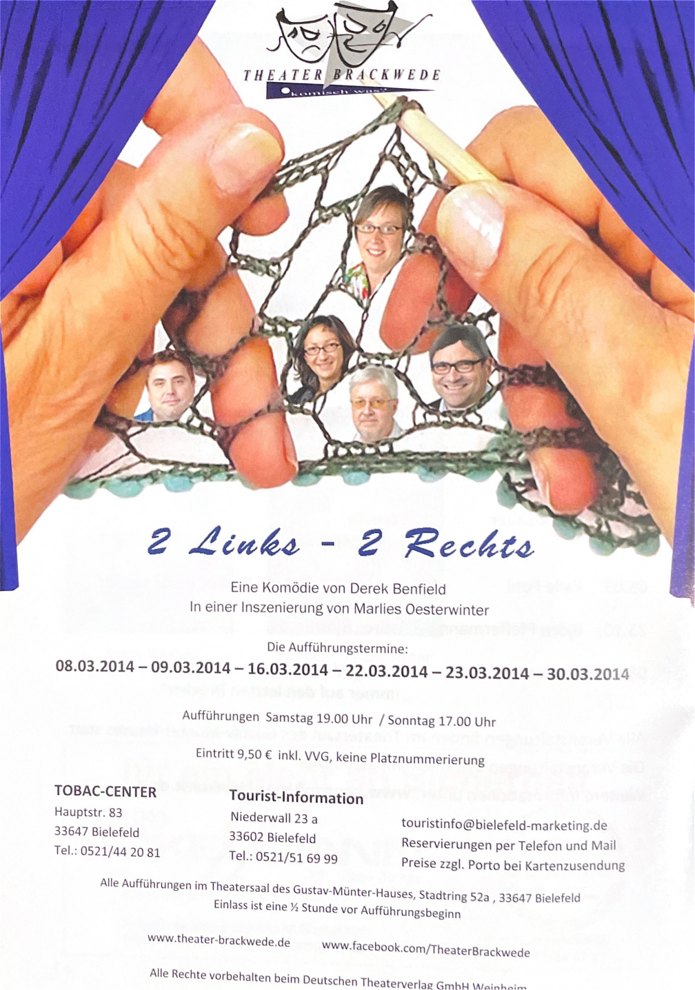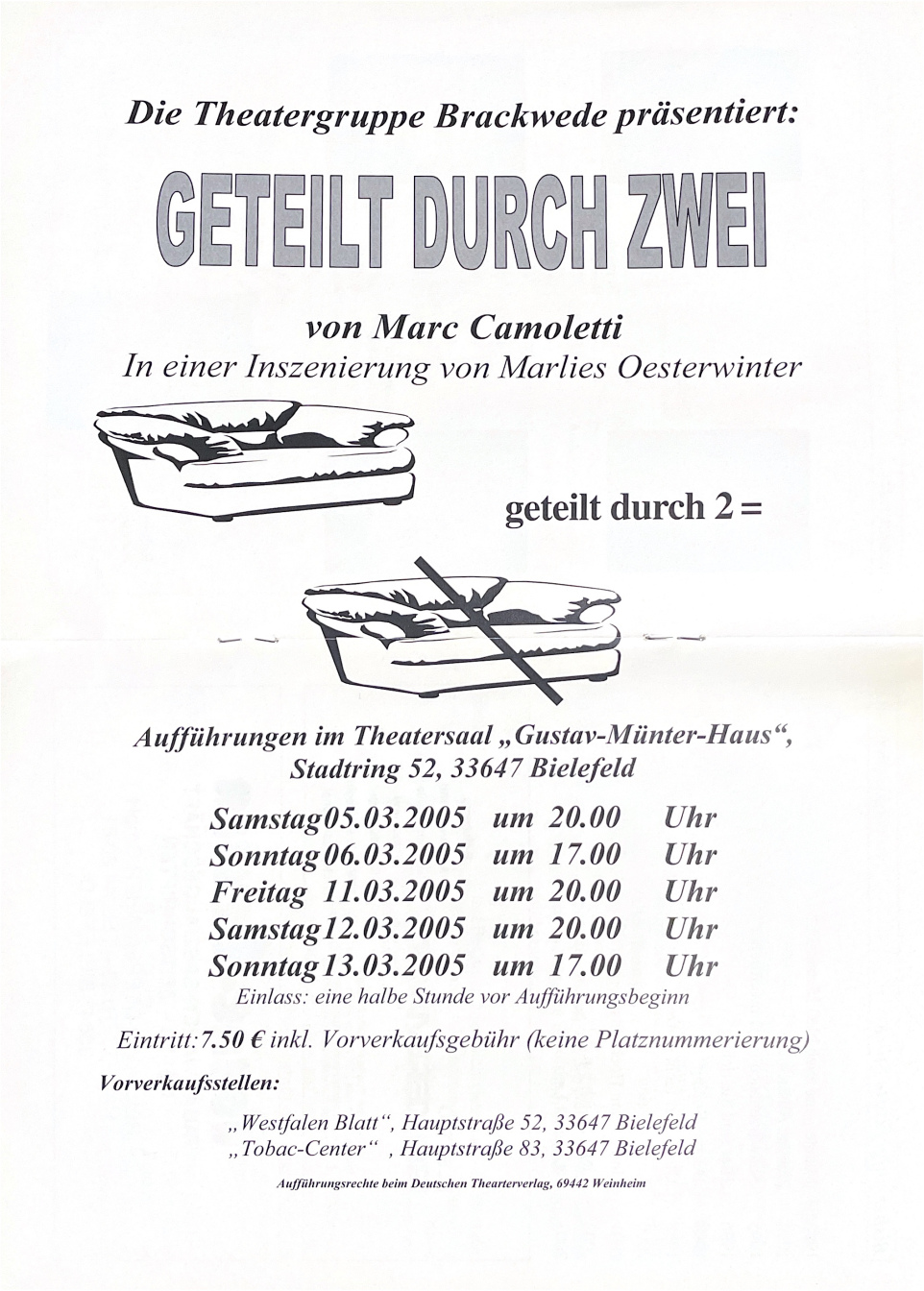 Das Theater Brackwede wurde 1989 ins Leben gerufen – anfangs mit kleinen Sketchen und Auftritten auf Gemeindefesten. Schon früh war klar: Die Leidenschaft für das Theater ist groß. 1992 folgte dann das erste abendfüllende Stück – ein Meilenstein, der den Grundstein für unsere heutige Ausrichtung legte.